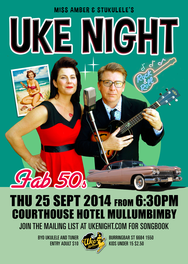 This was a very popular theme (no surprises there). The 50s was a great era for music and we had an interesting selection of hits and classics. Rod Coe back on the double bass and the wonderful John Proud laying into his custom made Capricorn Drums made for the perfect motor. Warren Earl, now a local Mullum lad was amazing as usual on guitar with a fine version of lefty Frizell’s Long Black Veil exciting the female ukers in the room. For the second month in a row there was dancing at the bar and in the isles. Clelia Adams took us home (also in her element) with her favs from the era. We rocked around the clock. Fantastic!!!